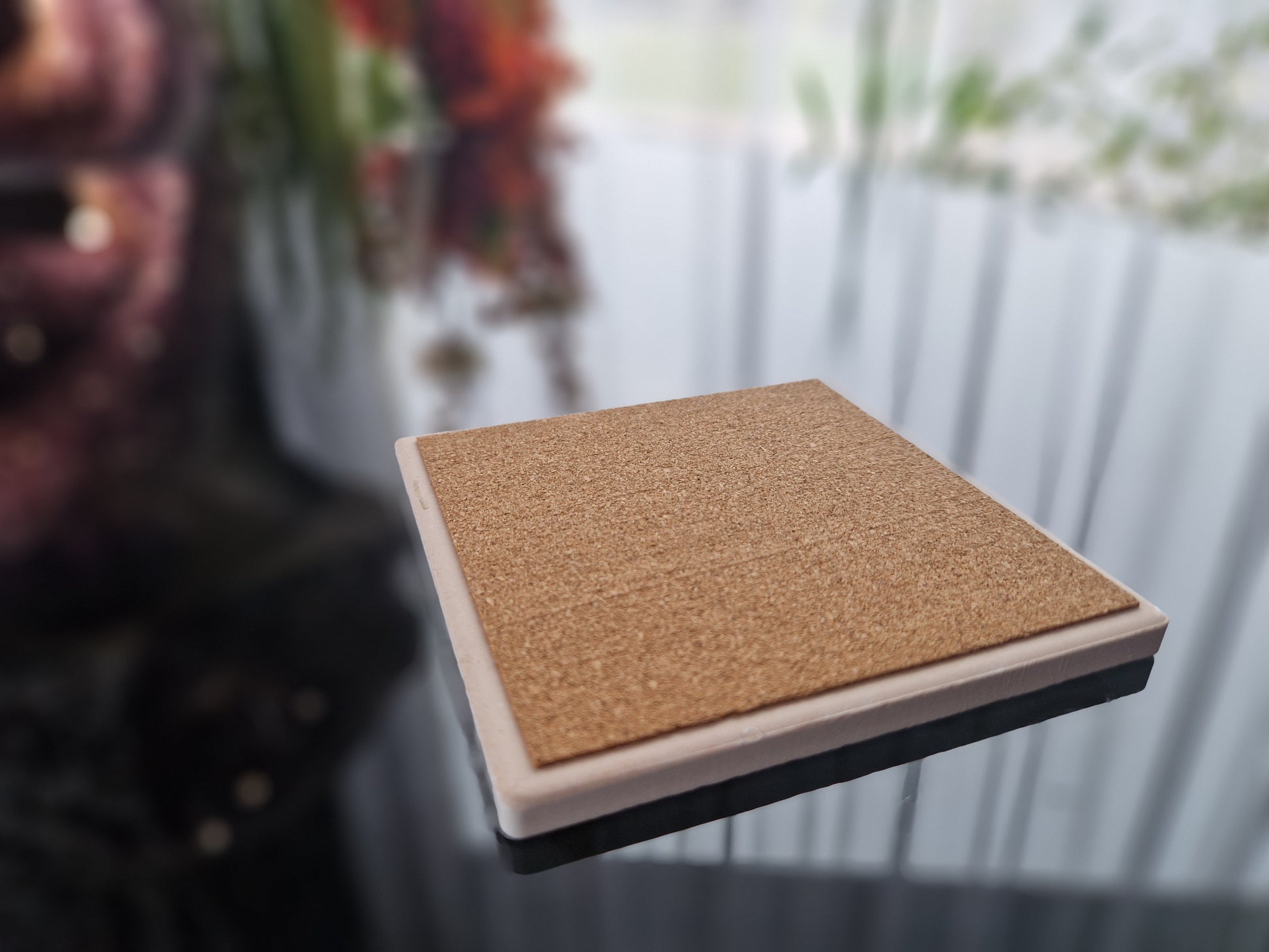 Each coaster is square, 10 x 10 cm (3.9 x 3.9 in), 0.7 cm (0.3 in) thick, made of glossy ceramic with a natural cork backing. They are heat-resistant and protect your table from scratches, making them both stylish and practical.